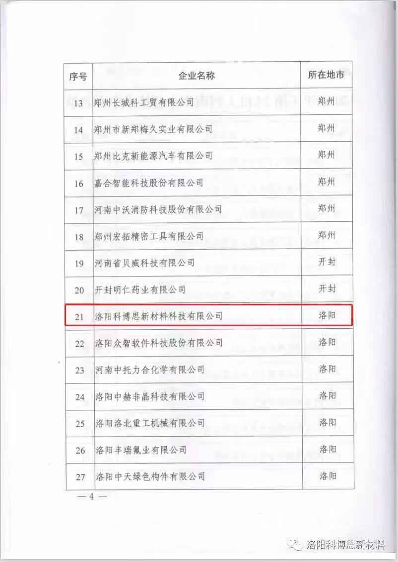 近日,河南省發展和改革委員會下發了《關于發布2020年(第24批)河南省企業技術中心名單的通知》(豫發改高技〔2020〕919號),經過評審、考察、公示等環節,洛陽科博思新材料科技有限公司從全省多家企業脫穎而出,順利通過第24批省級企業技術中心認定,這是公司在2018年被認定為洛陽市企業技術中心后的又一突破。