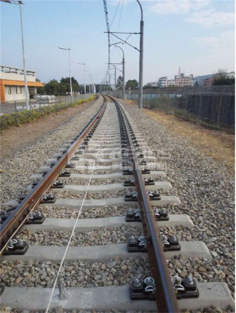 預(yù)埋式雙層非線性減振扣件主要由預(yù)埋鐵座、中間橡膠墊板、鐵墊板、軌下橡膠墊板以及彈條系統(tǒng)等組 成,屬于中等減振扣件范疇,具有優(yōu)異的動(dòng)態(tài)減振性能,相較于普通彈性分開(kāi)式扣件減振達(dá)8dB以上, 可廣泛地應(yīng)用于城市軌道交通線路中。
